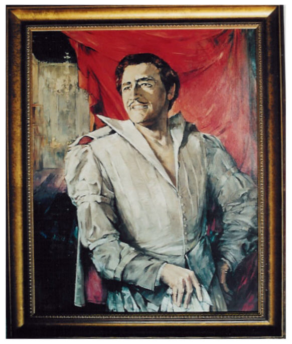 Karl Schmitt-Walter als Don Giovanni, Gemälde von G. Schätzl nach einem Foto von S. Töpfer (1916-2000), Nationaltheater München, Foyer 3. Rang, Foto W. Engartner